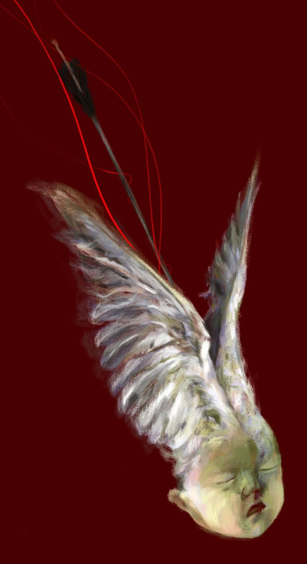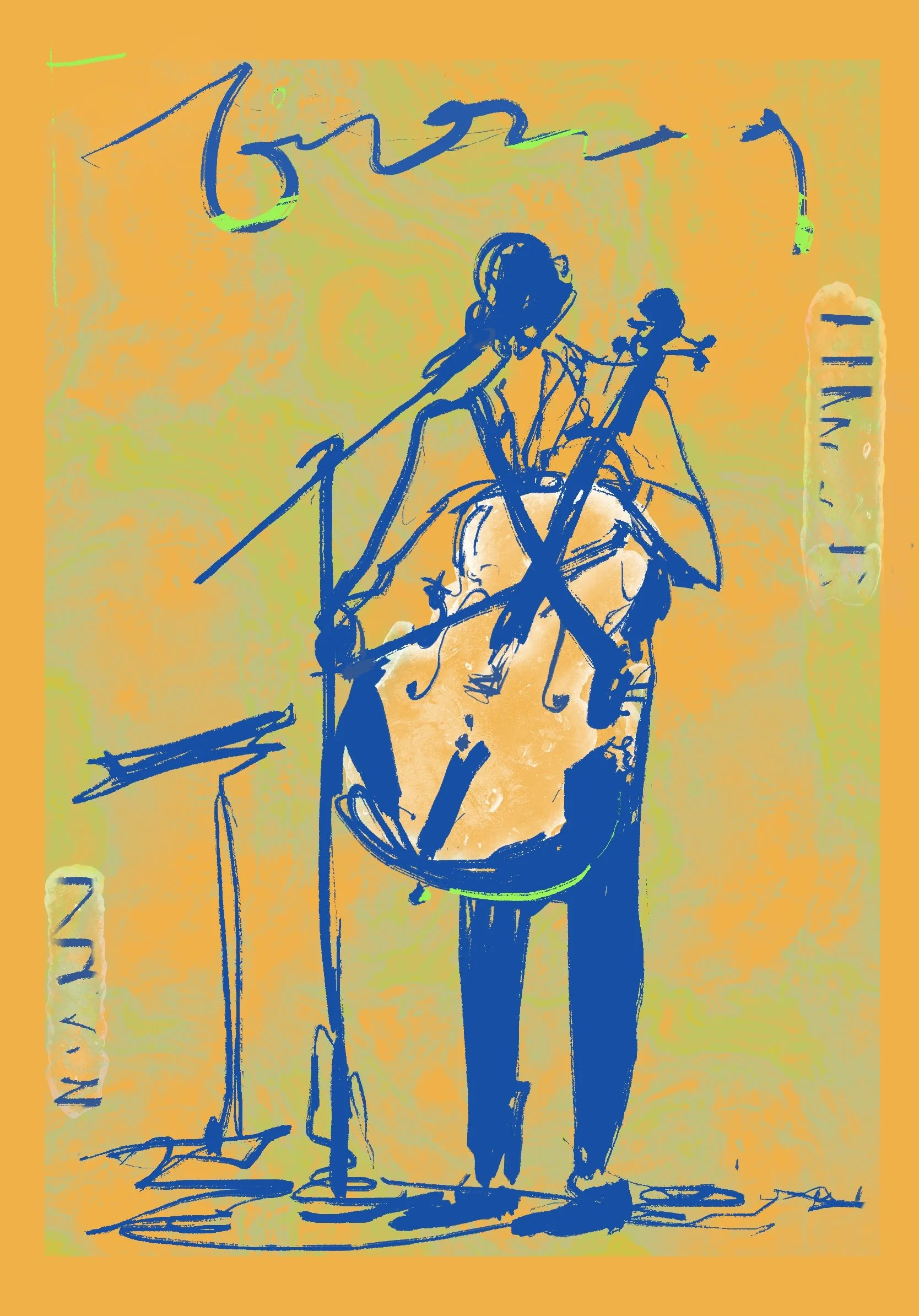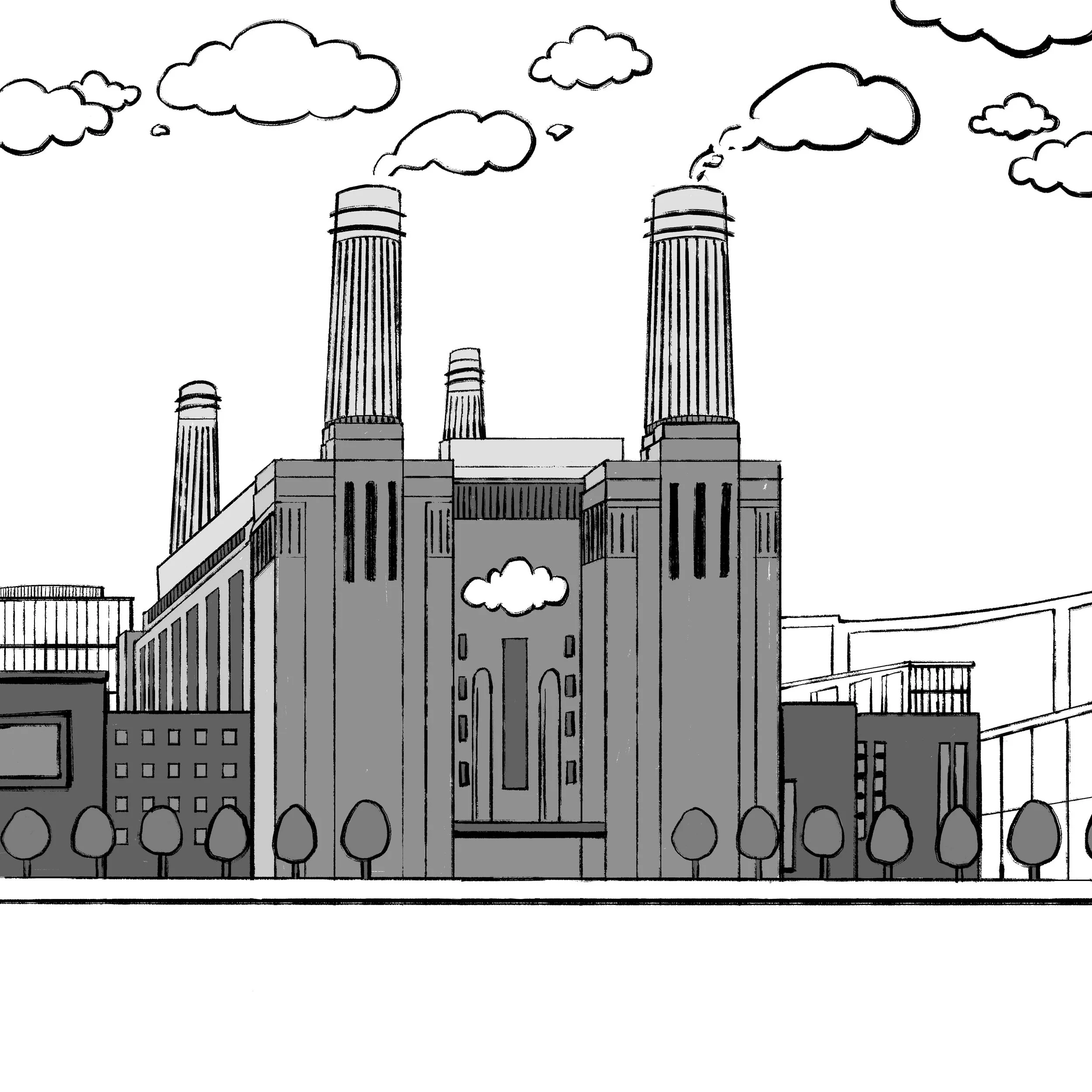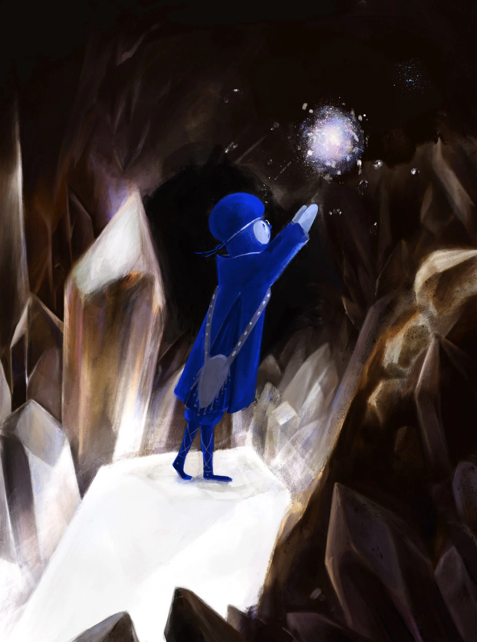 The Blue-Hued Being and the Fiery Red Building View fullsize