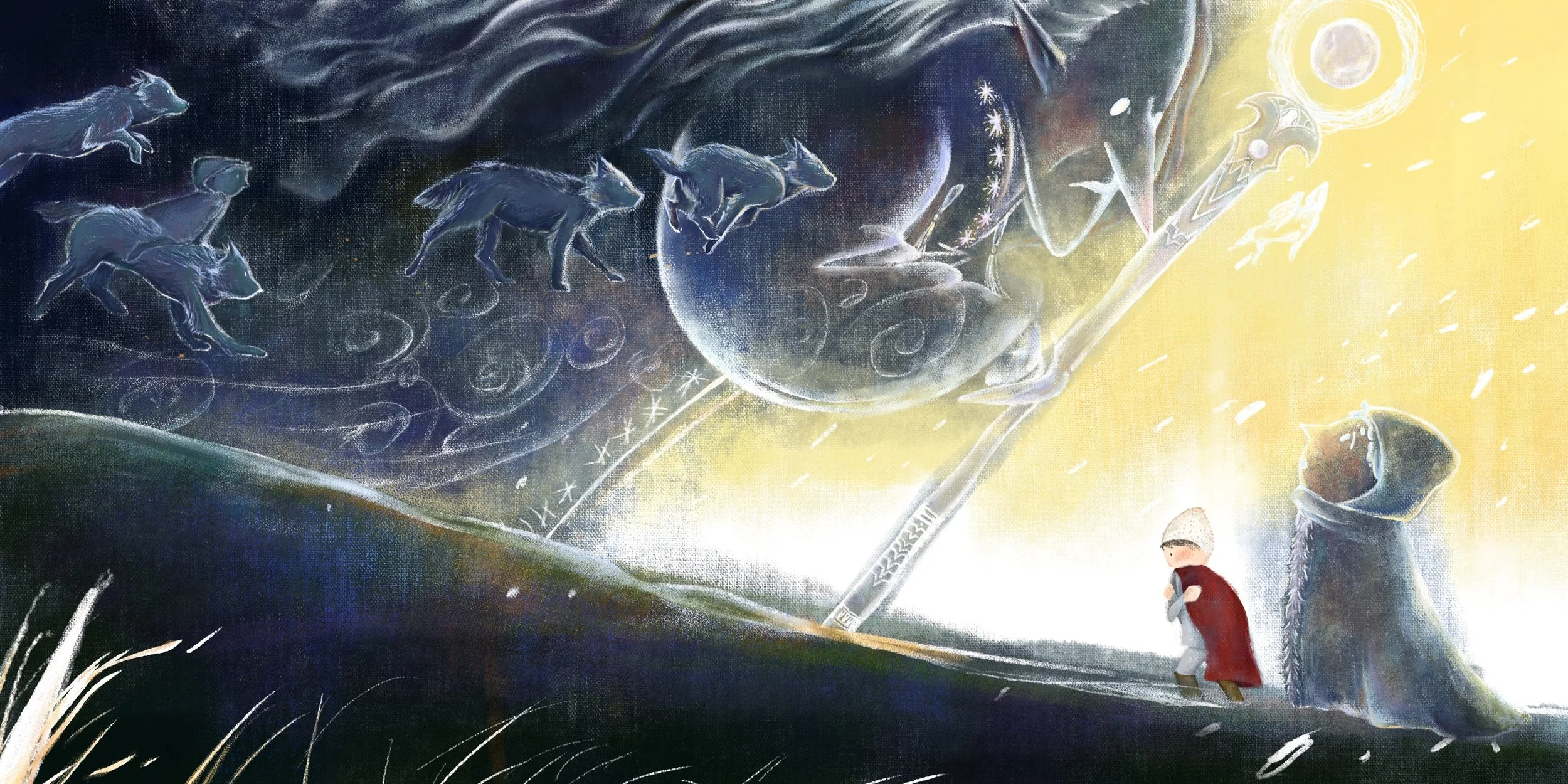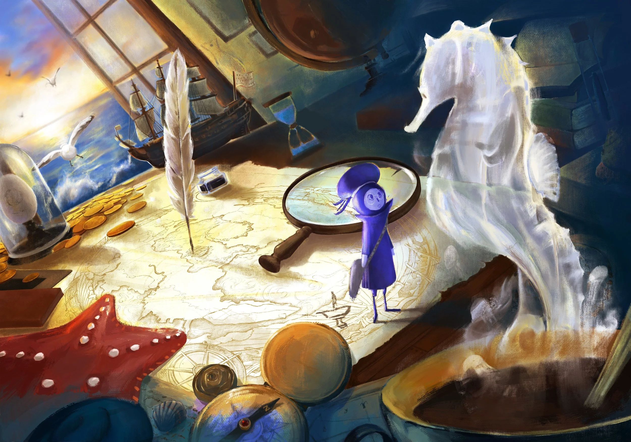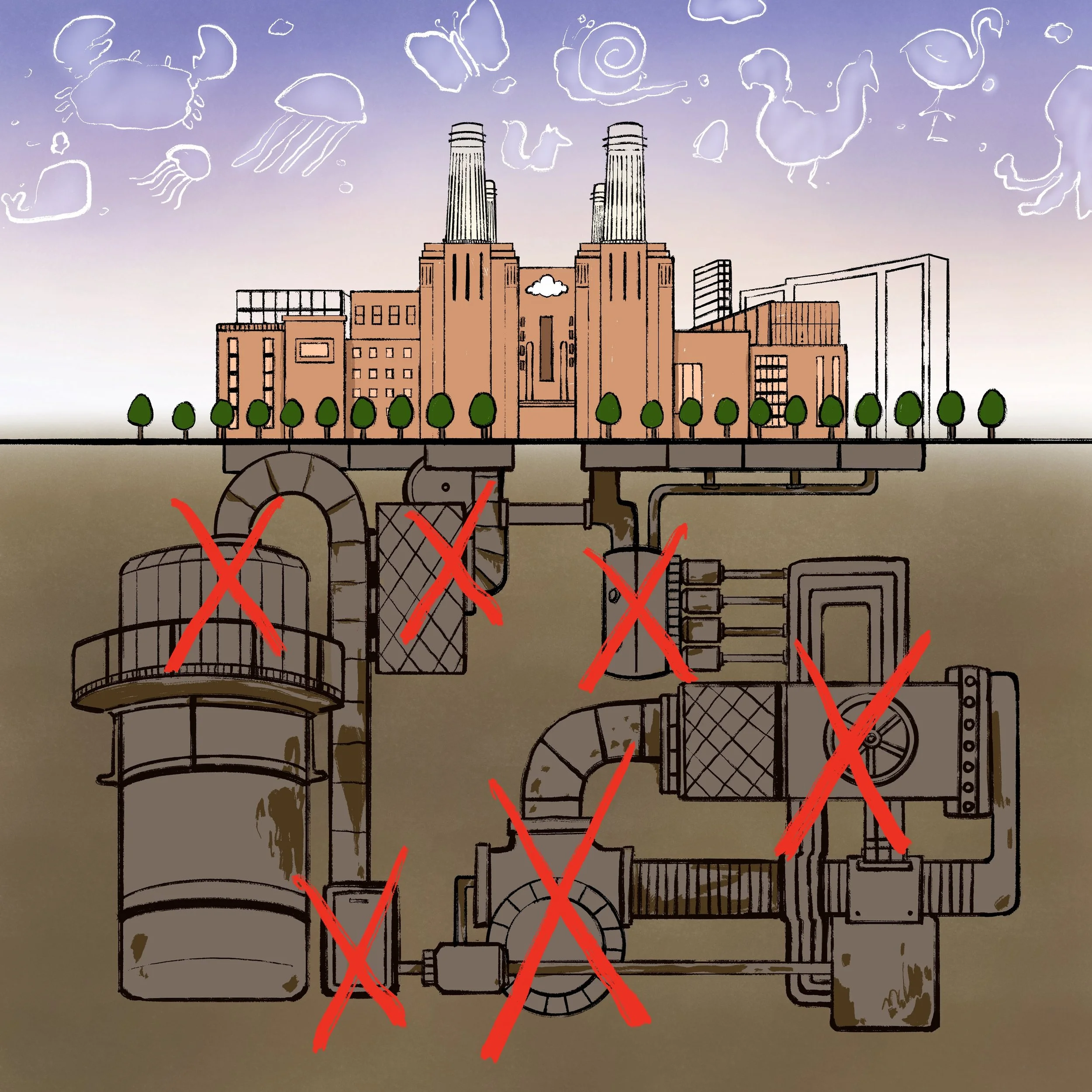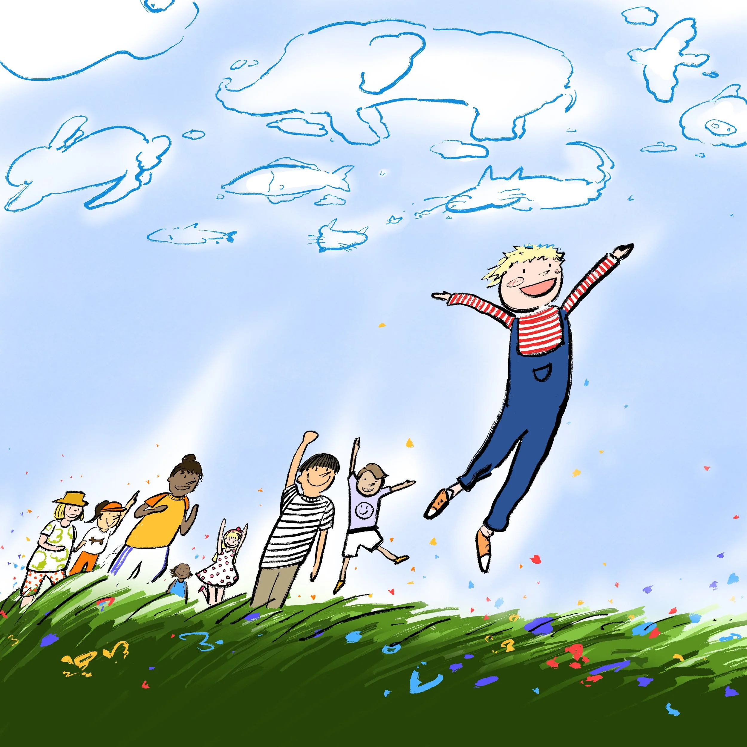 The Blue-Hued Being and the Fiery Red Building View fullsize